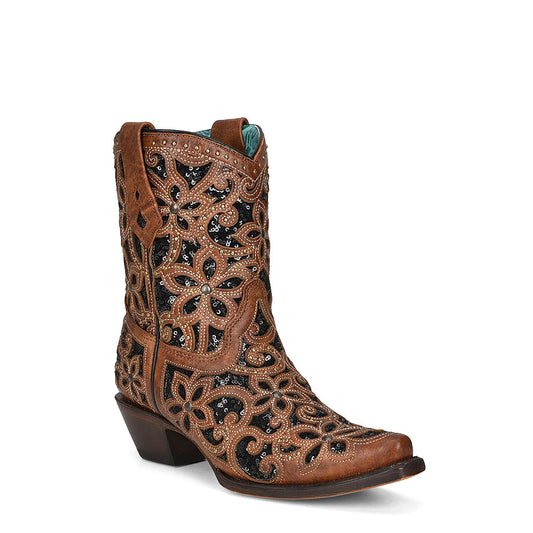 Corral Women's Tan Glitter Inlay & Studs Ankle Boot A4278