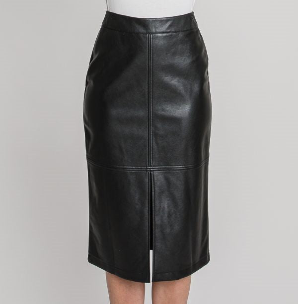 Make a bold statement in our Black Faux Leather Midi Skirt — the perfect blend of edge and elegance. Crafted from smooth, high-quality faux leather, this skirt features a sleek silhouette with just the right amount of structure. The front slit adds a touch of movement and allure, while the zipper back closure ensures a secure, flattering fit.