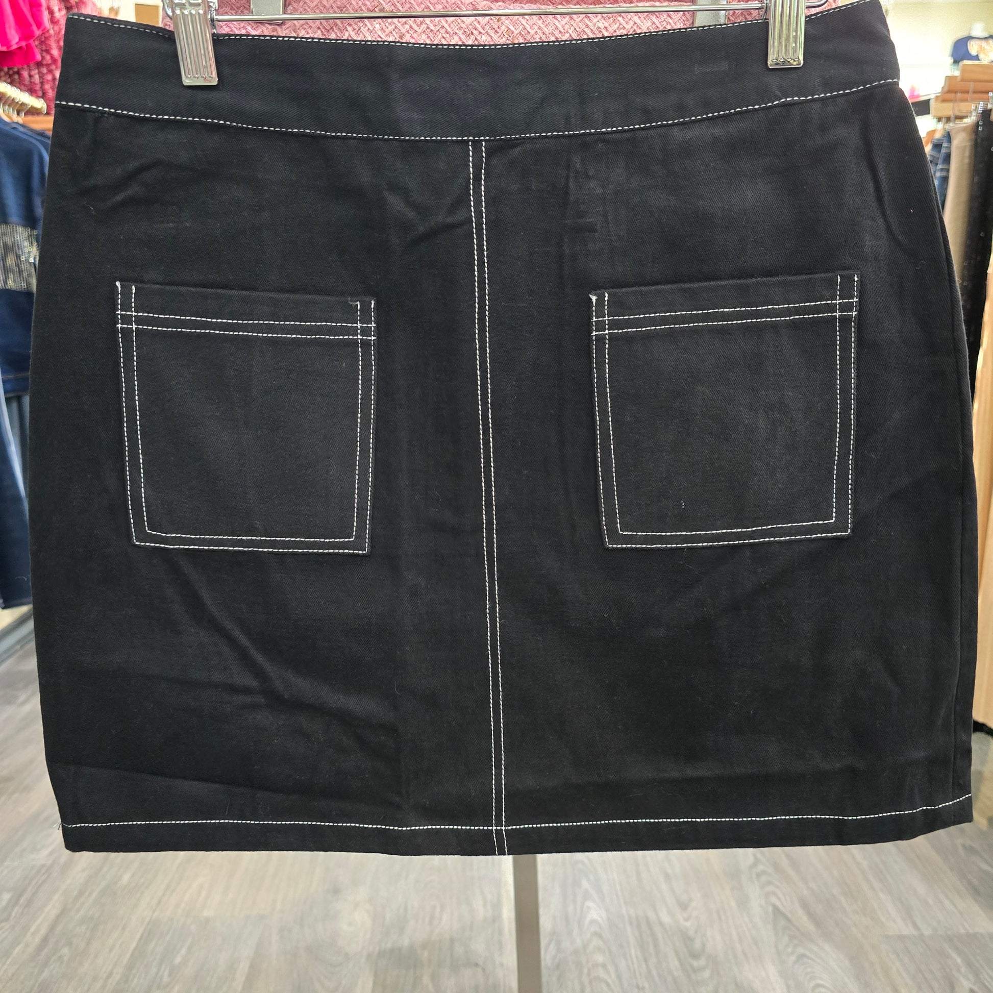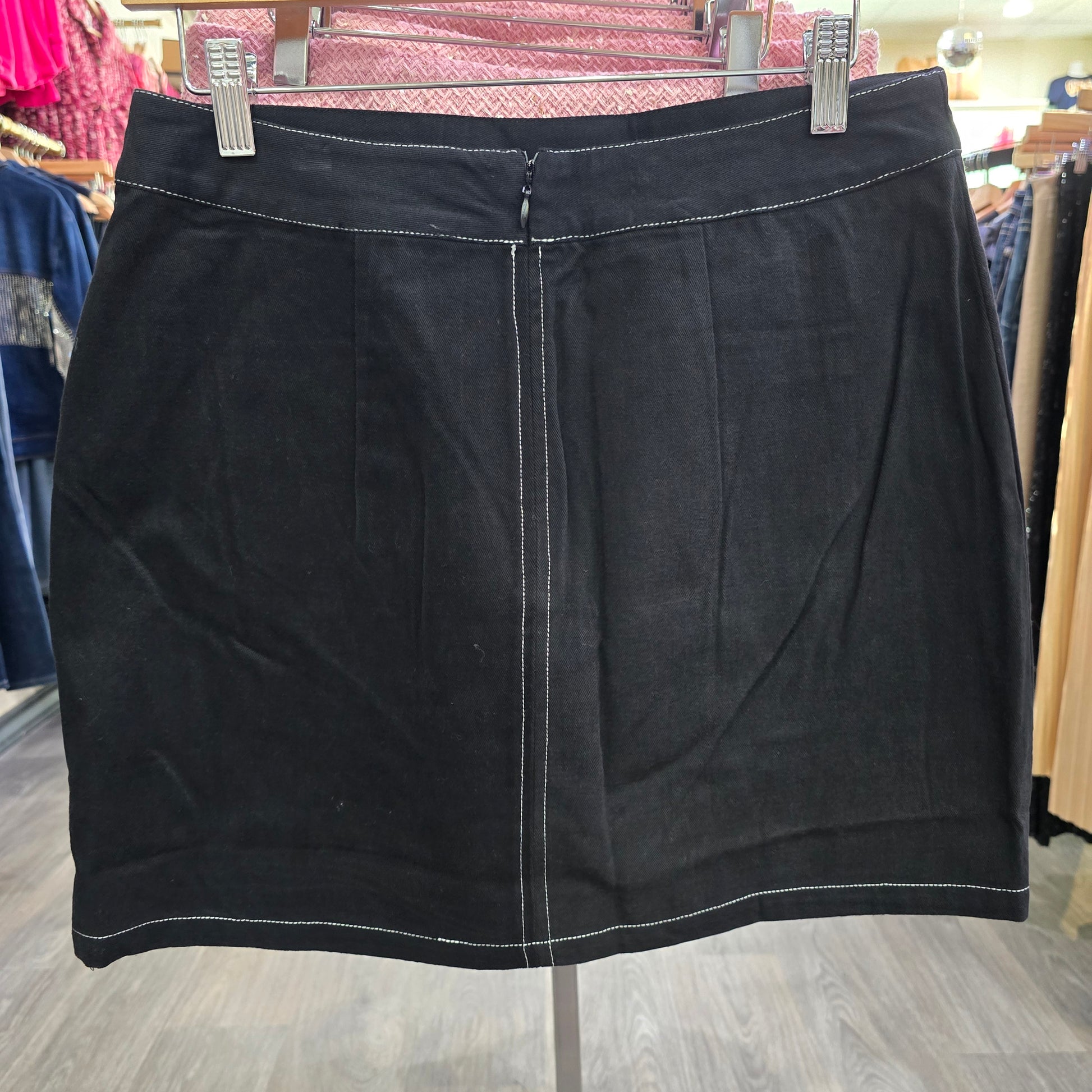 Effortlessly versatile and sleek, this black mini skirt is a wardrobe must-have. Designed with convenient front pockets and a flattering silhouette, it features a zipper closure for a modern touch. The best part? It’s reversible — wear it with the pockets in front for a casual, functional look, or switch it around for a smooth, clean finish in the back. Black. Polyester.