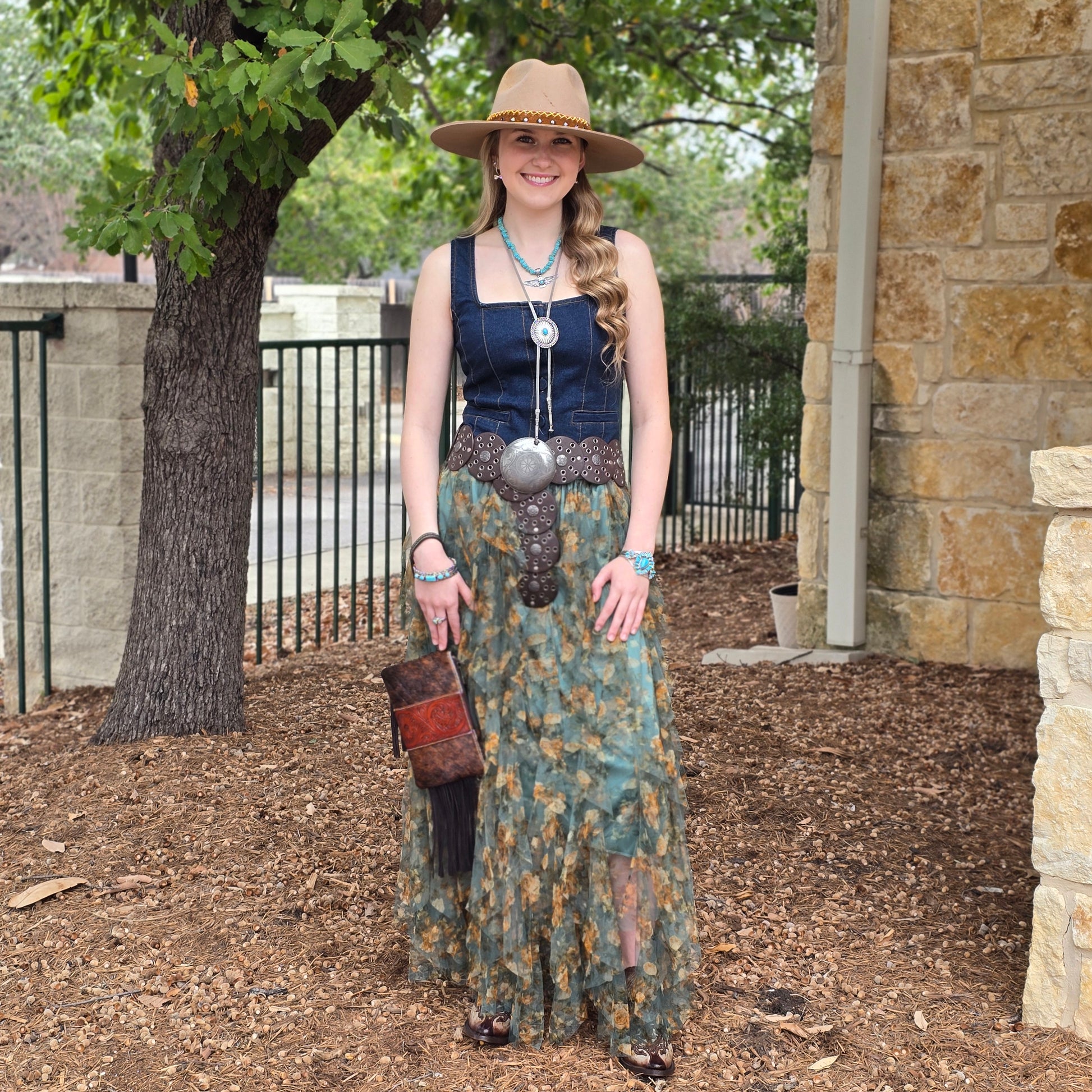 A standout piece that brings boho charm and western romance together in one unforgettable skirt.