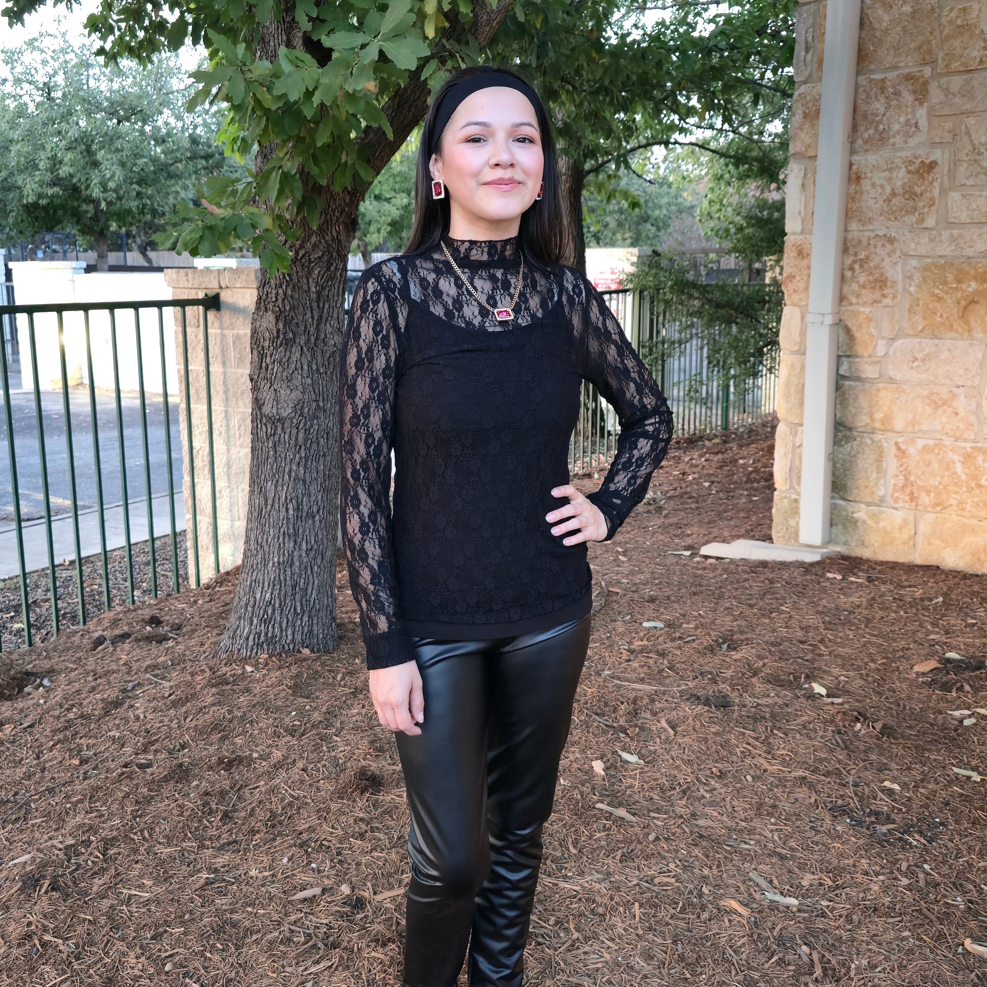 Elegant, feminine, and endlessly versatile — this black floral lace mesh top is the perfect layering piece for elevating any outfit. Designed with a sheer floral lace pattern, it features long sleeves and a mock neckline for a chic, timeless look. The stretchy, lightweight fabric makes it comfortable to wear on its own with a cami or styled under jackets, shackets, and dresses.