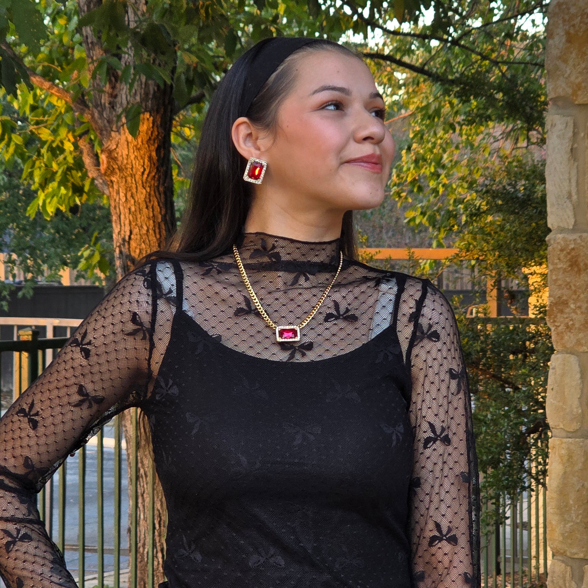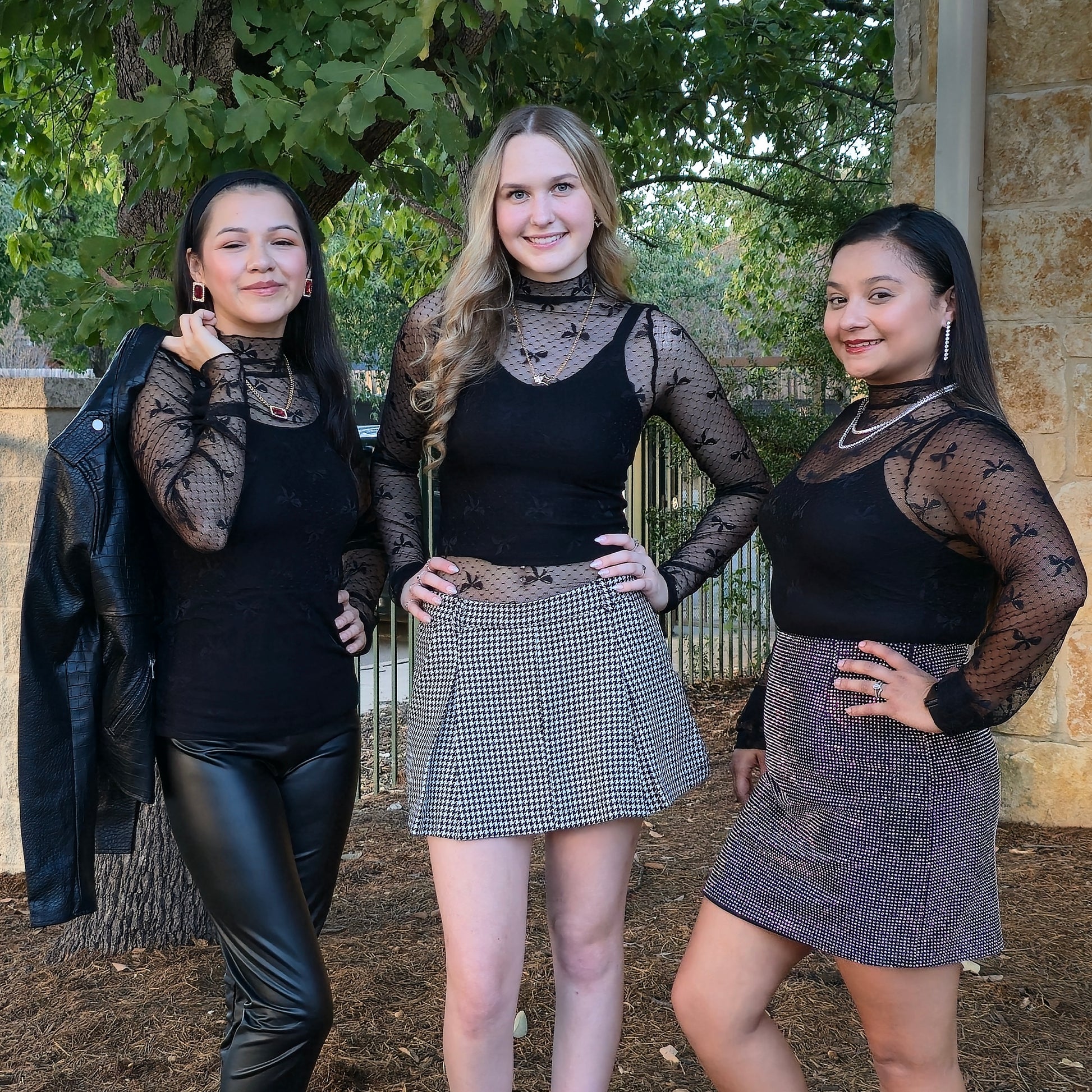Elevate your style with this gorgeous black lace mesh top featuring delicate bow detailing throughout. This chic, sheer long-sleeve piece adds the perfect touch of elegance and edge to any outfit. Designed with a soft, stretchy mesh and a flattering mock-neck silhouette, it layers beautifully over your favorite cami or bralette.