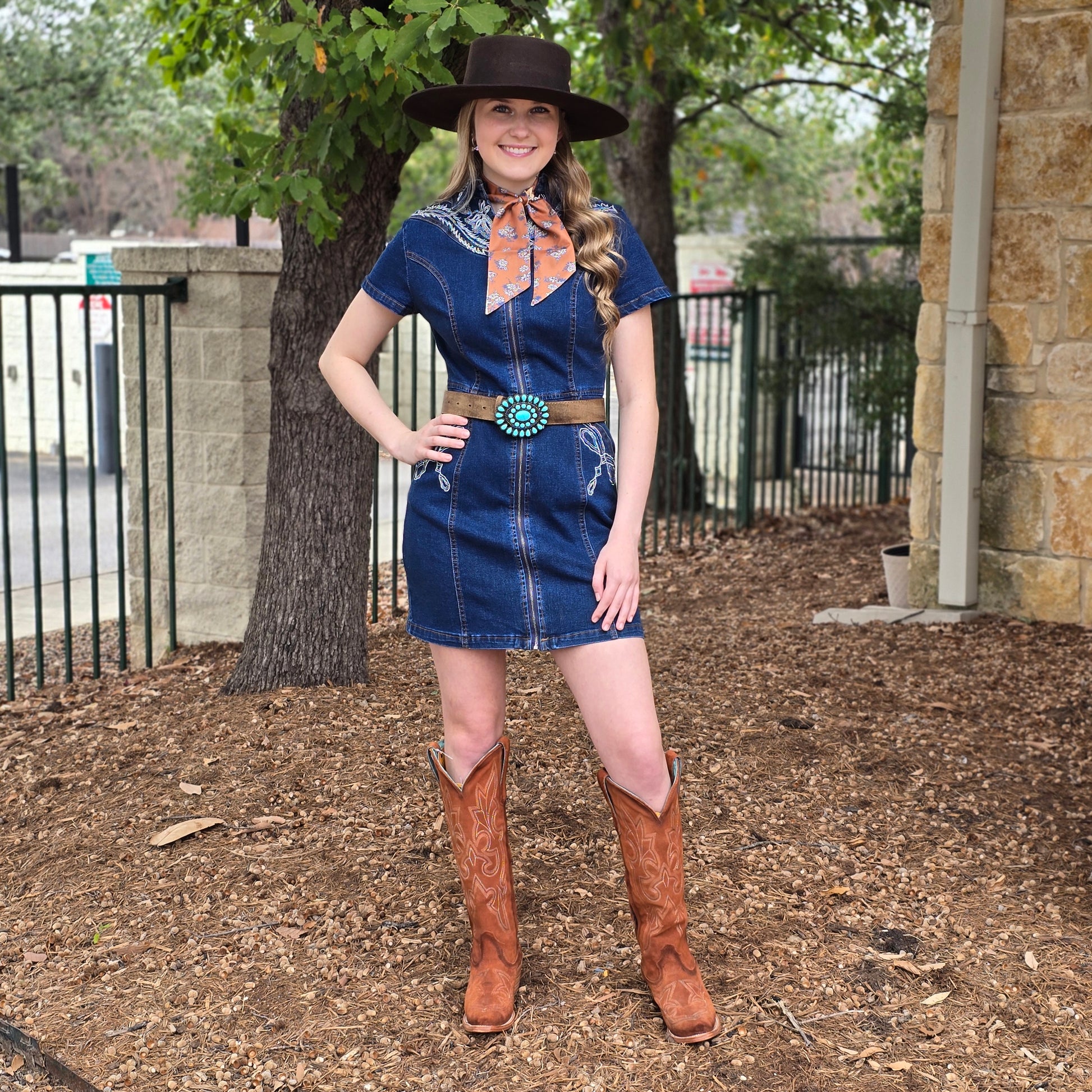 An easy, go-to denim dress that pairs perfectly with boots, hats, and all your favorite western accessories.
