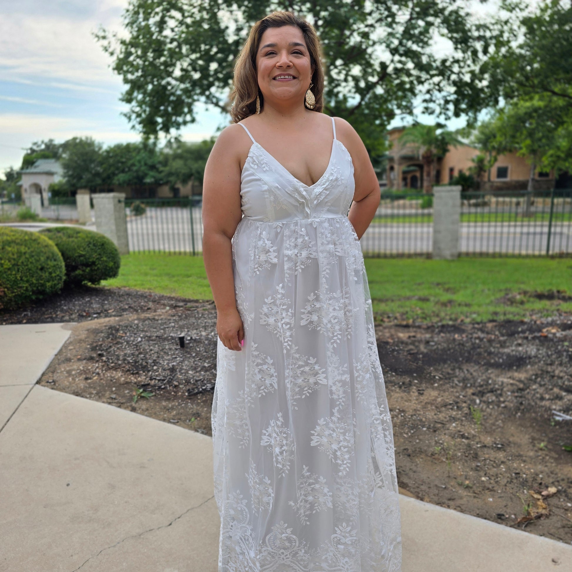 Graceful, romantic, and effortlessly stunning — this white lace maxi dress is pure elegance. Featuring a flattering deep V-neckline with adjustable spaghetti straps and a flowing silhouette that drapes beautifully. The sheer lace overlay with intricate floral detailing adds a touch of timeless charm, while the soft lining keeps you comfortable. Perfect for bridal showers, engagement photos, beach weddings, or any occasion where you want to shine.
