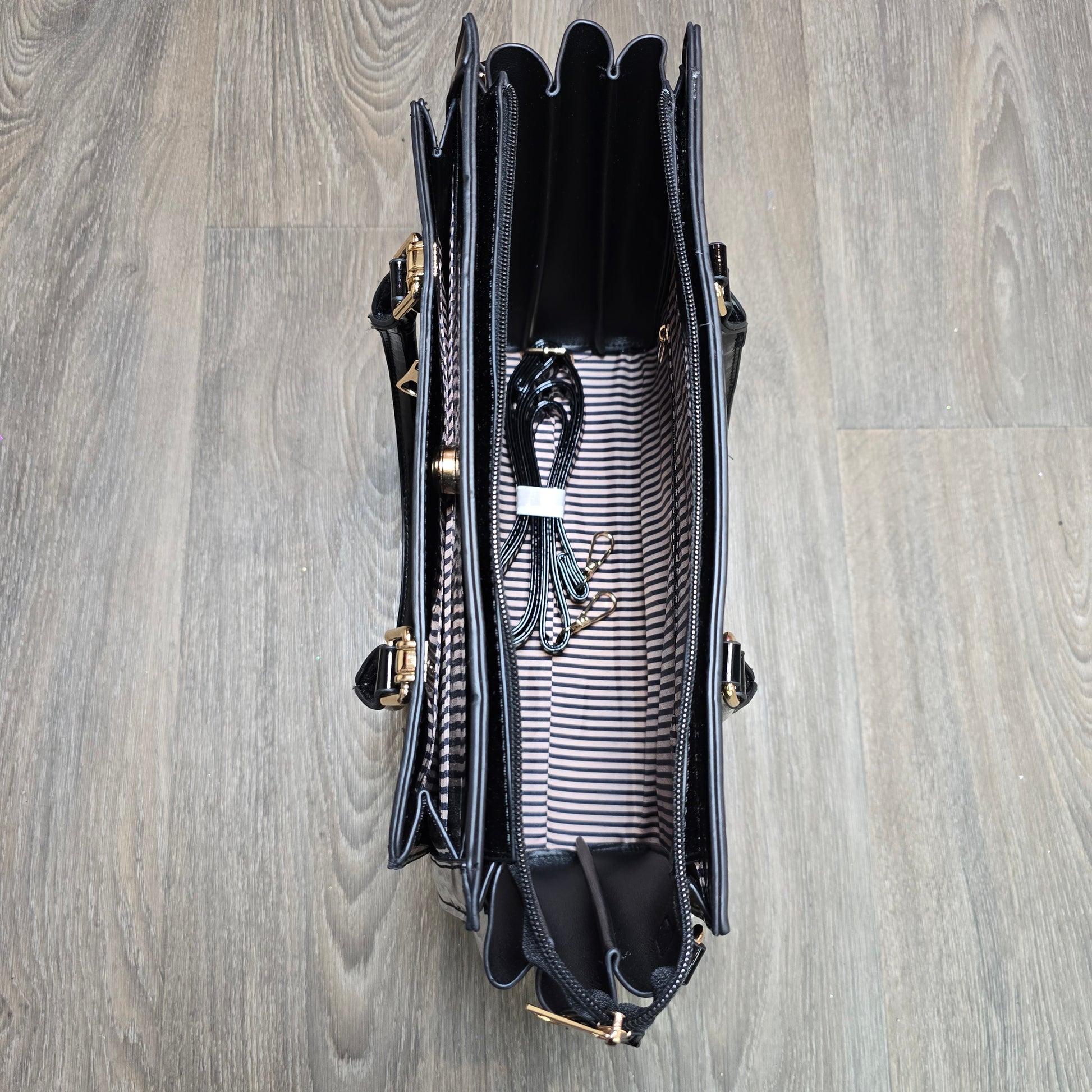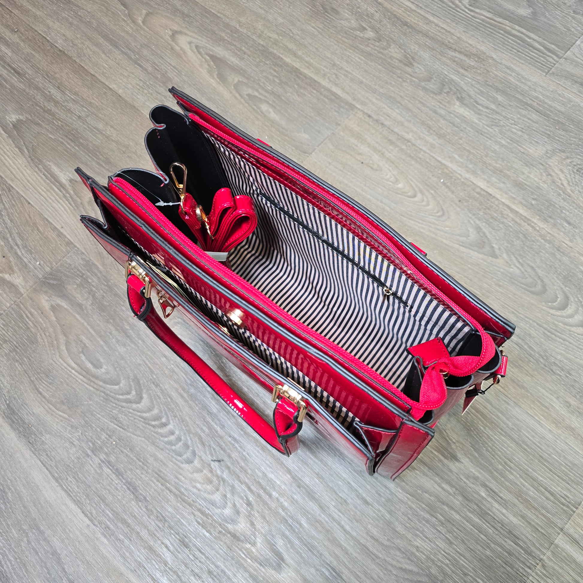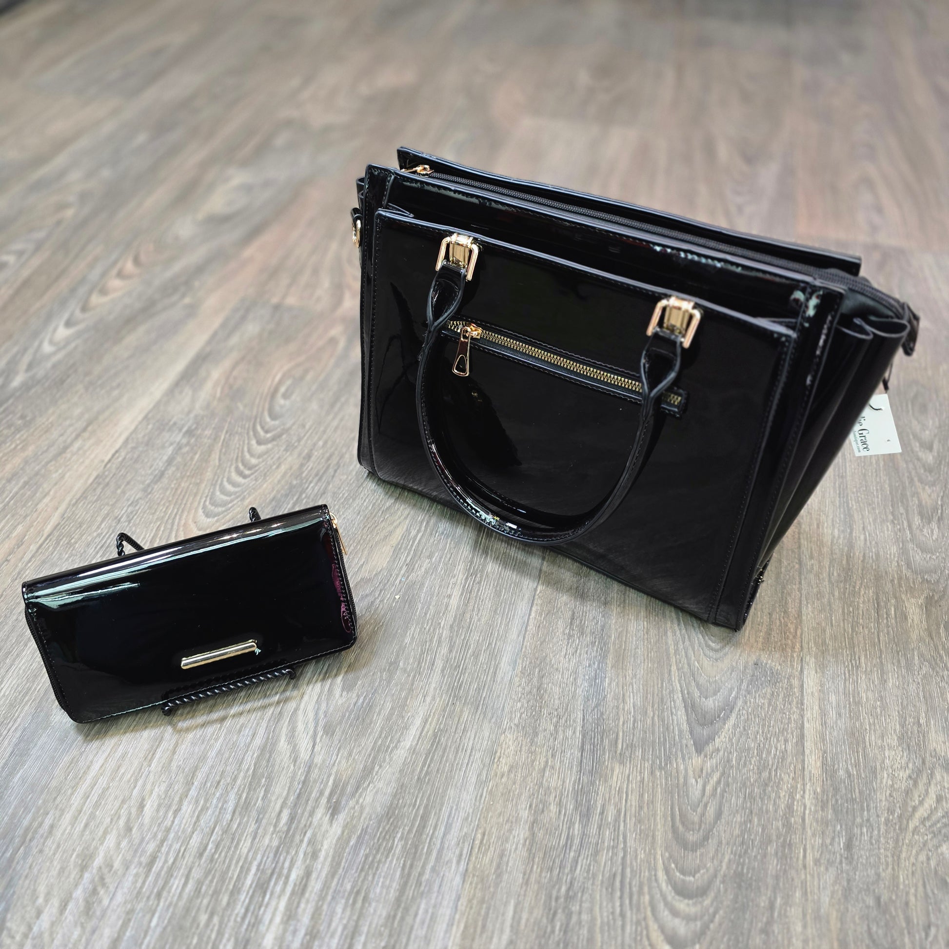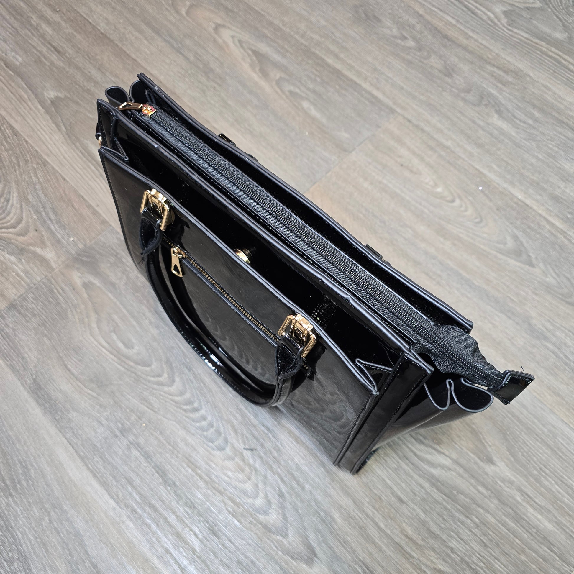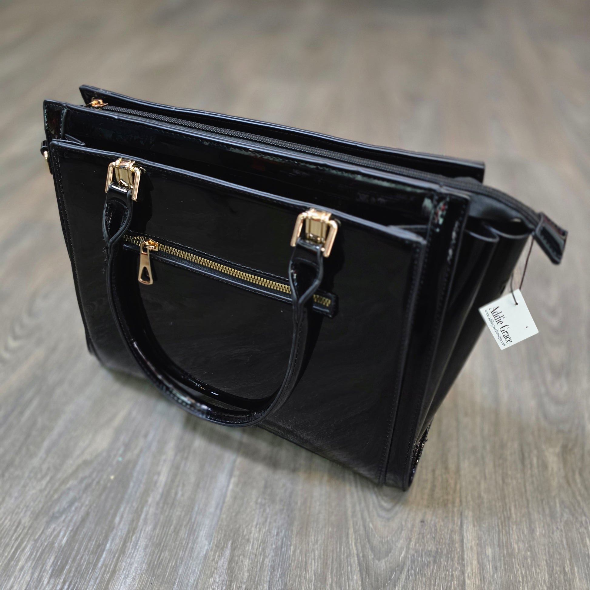 Polished, chic, and incredibly functional — this structured handbag is the perfect blend of style and organization. Designed with a glossy finish and gold hardware, it delivers a high-end look while offering all the space you need for work, everyday errands, or a night out.