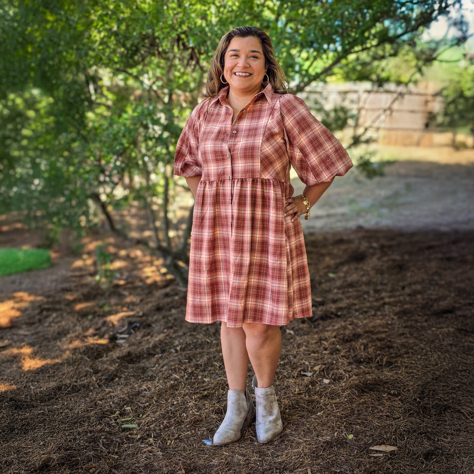 Nothing says fall quite like plaid, and this Autumn Plaid Button-Front Dress is a seasonal must-have! Featuring a soft mix of rust, rose, and cream tones, this dress combines cozy fall colors with an easy, flattering fit.