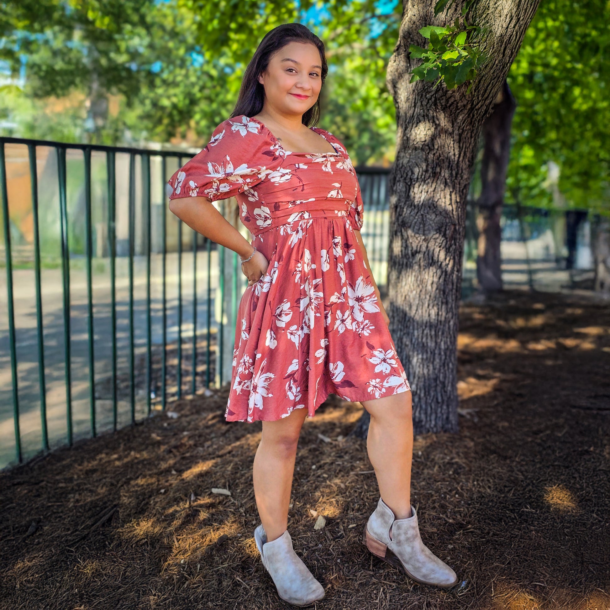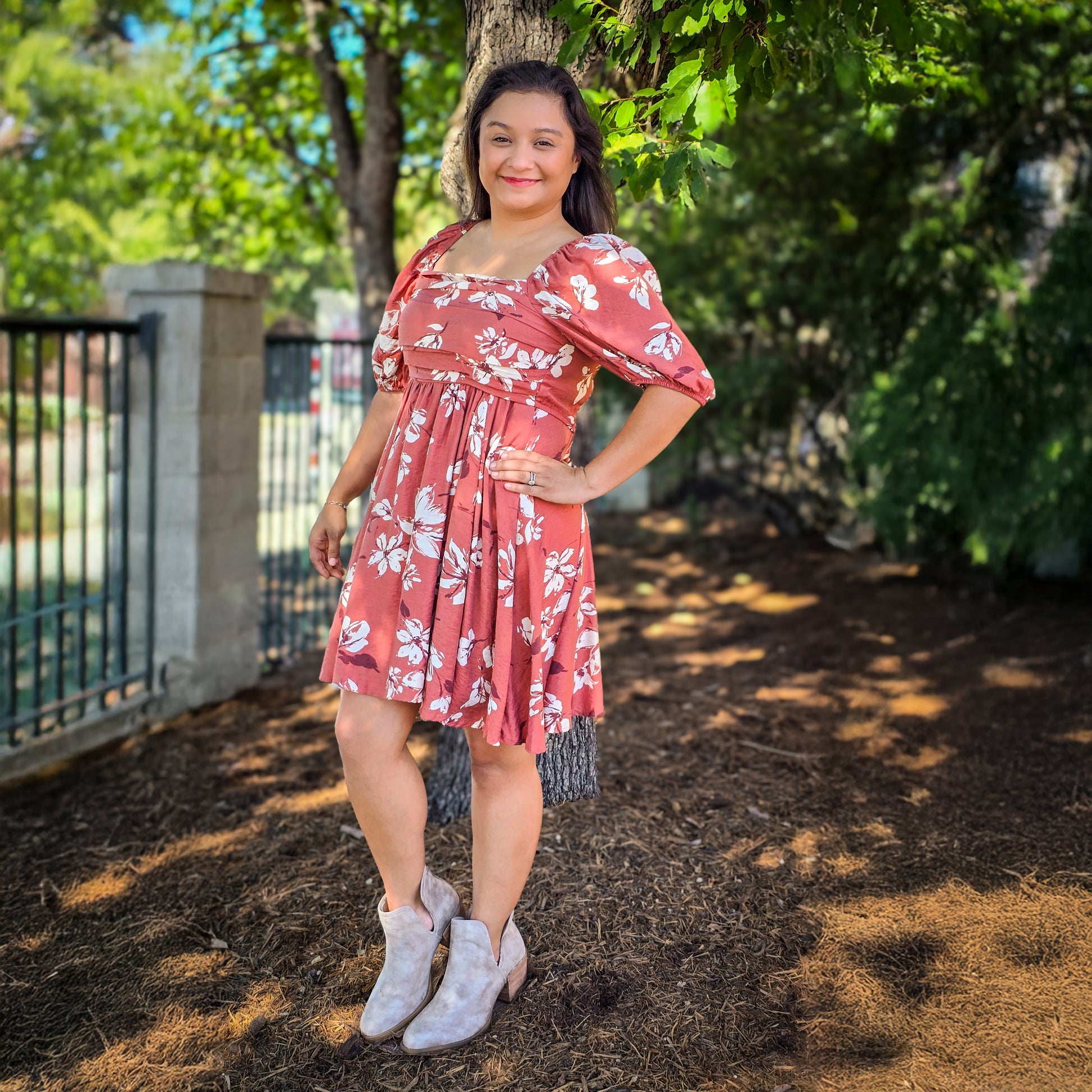 Bring on the fall charm with our Rust Floral Puff Sleeve Dress — a feminine and flattering style that’s perfect for any occasion. Featuring a warm rust tone with soft ivory floral prints, this dress captures effortless autumn beauty. The square neckline, smocked back, and puff sleeves add a romantic touch, while the flowy skirt creates a flattering silhouette that moves beautifully with you.