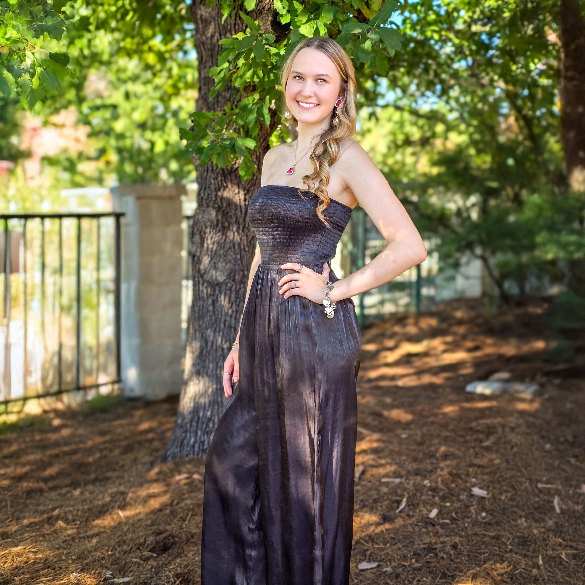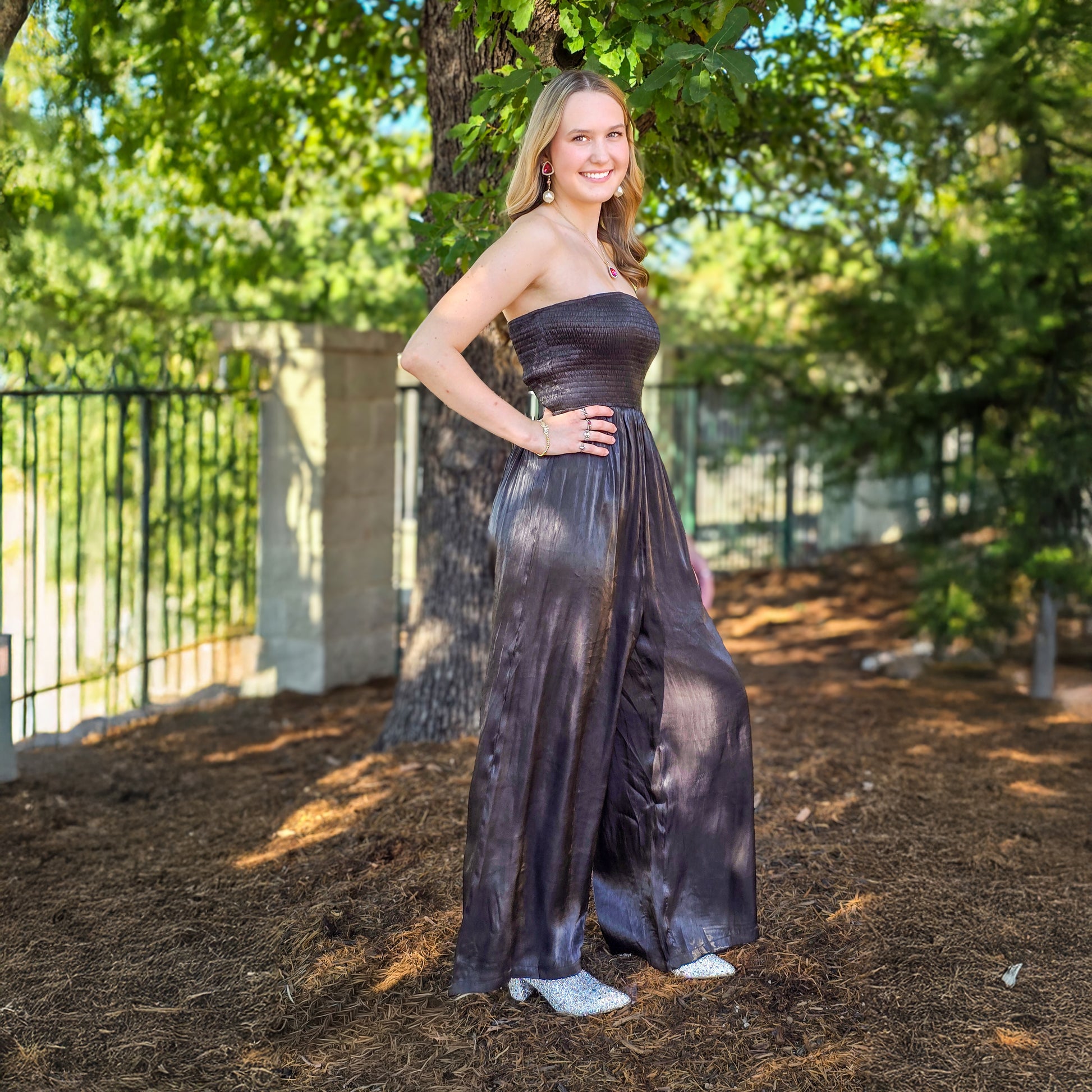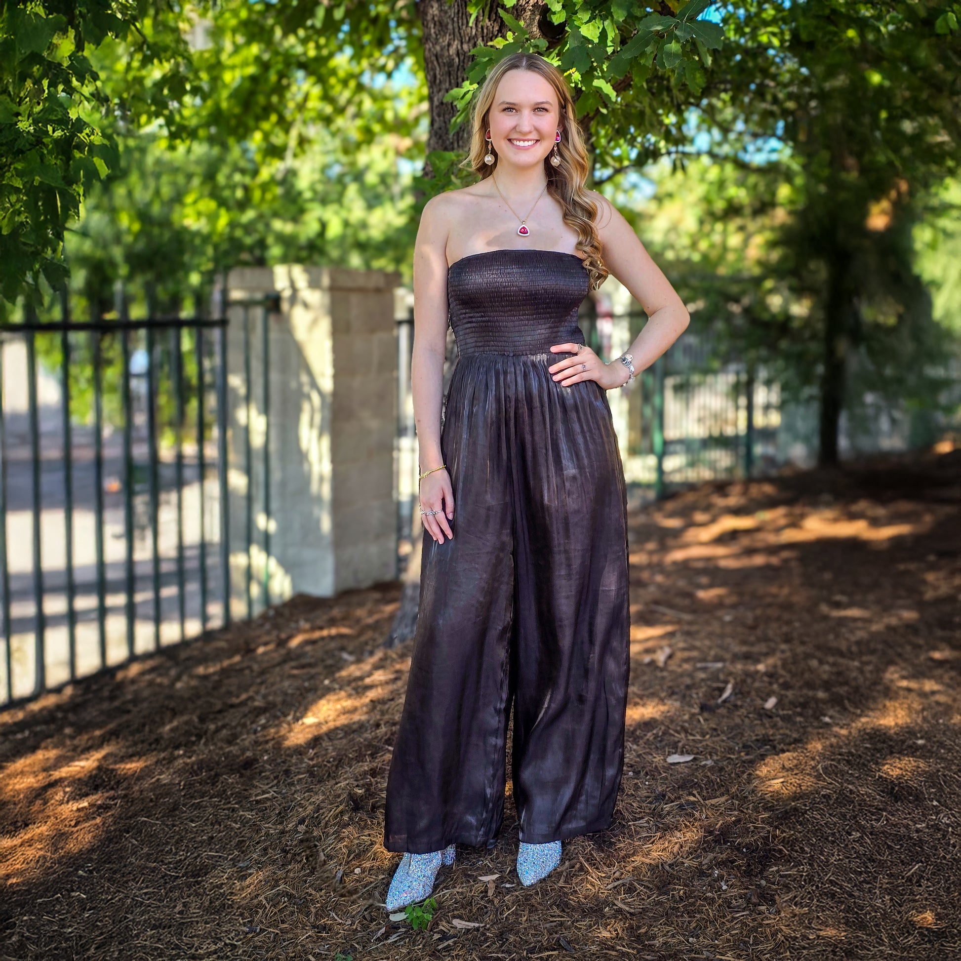 The smocked strapless bodice offers a comfortable, flattering fit that stays in place, while the flowy wide-leg design creates a sophisticated silhouette. Whether you're heading to a holiday party, dinner date, or night out, this jumpsuit makes elegance look easy.