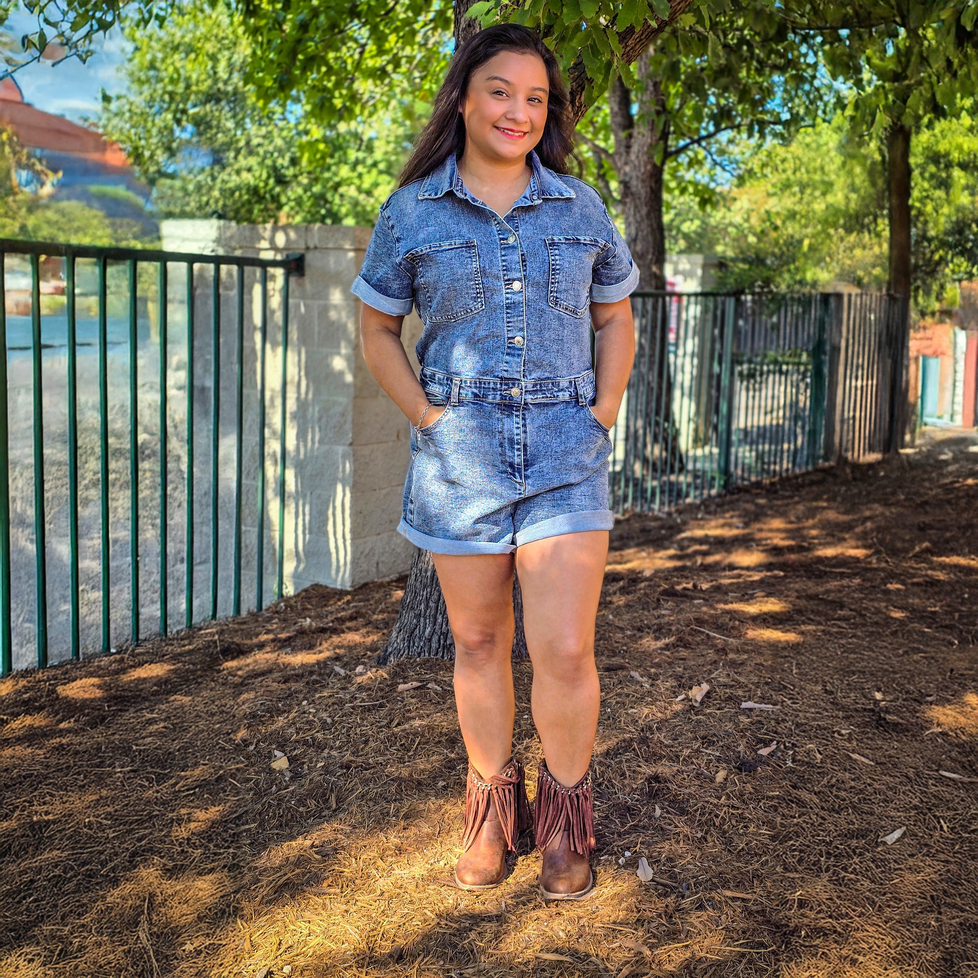 This Washed Denim Romper is the ultimate fall statement piece — casual, cute, and effortlessly on trend. Designed with a soft, vintage-style wash and a flattering button-up front, this romper gives that perfect blend of retro charm and modern comfort.