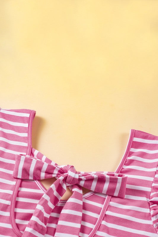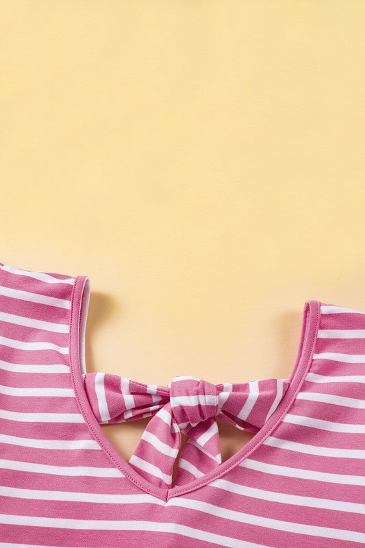 Sexy casual tee for women of different agesClassic and will never out of fashion with a striped print silhouetteIt features a v neck, butterfly sleeves and flattering fit tailored cutThe hollow-out with knotted detail is sexy daring